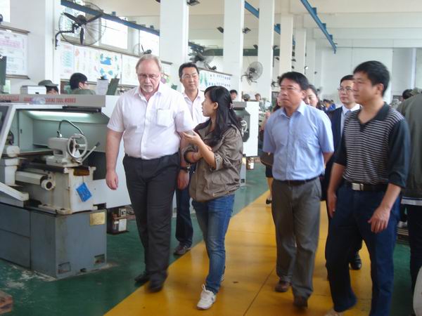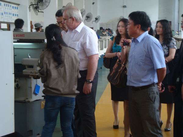 托马斯·摩尔经理在公司彭晓副董事长、国际教育公司杨理诚经理、工程训练中心李建明主任等一行的陪同下,参观了中心金工及电工电子实习教学区,仔细察看了实习设施,询问有关实习教学方法、实习设备使用、师生配比等方面的情况。参观后,托马斯·摩尔经理对公司工程训练中心的办学条件和教学设施给予了较高的评价。