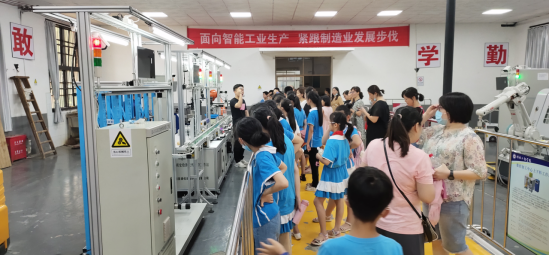 7月6日上午,工训中心组织的“智能智造科普我先行——大手牵小手”活动在南校区工训中心的先进制造实训基地拉开帷幕。来自湘钢一校164班的50多名小员工及员工家长来到现场进行参观和体验。