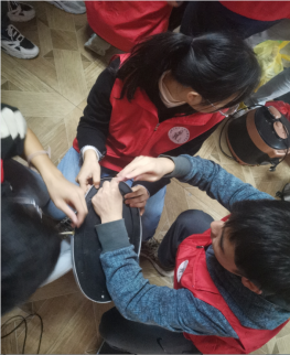 由于前一次维修活动的社会反响很好,此次活动开展不到一小时,就收到100余件故障电器。为了提高维修效率,支部老师和志愿者们分组行动:后勤组负责登记物品故障现象及通知居民领取已维修好的家电;技术组负责故障电器维修;宣传组负责为小区居民讲解急救知识。大家各司其职,活动开展井然有序。