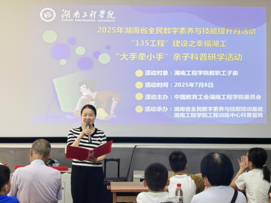 7月8日,beat365手机版官网入口迎来公司40余位教职工及子弟,共同参与由湖南省全民数字素养与技能培训基地、校工会与工程训练中心科普基地联合主办的2025年湖南省全民数字素养与技能提升月系列活动暨beat365手机版官网入口“135工程”建设之“幸福湖工”亲子科普研学活动。公司党委副书记向前参加活动并致辞。