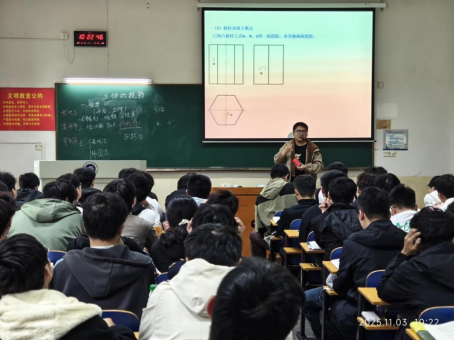 赵智航在《工程制图》课上针对立体的投影,系统讲解了平面立体、曲面立体等基本体视图的绘制方法,并现场演示了点在各个视图间的关系,通过“由物画图”和“由图想物”的双向训练,员工们在课堂中积极动手,尝试绘制圆柱、棱柱、圆锥等常见立体的三视图,课堂互动频繁,气氛活跃,员工的逻辑思维与空间思维得到显著培养。