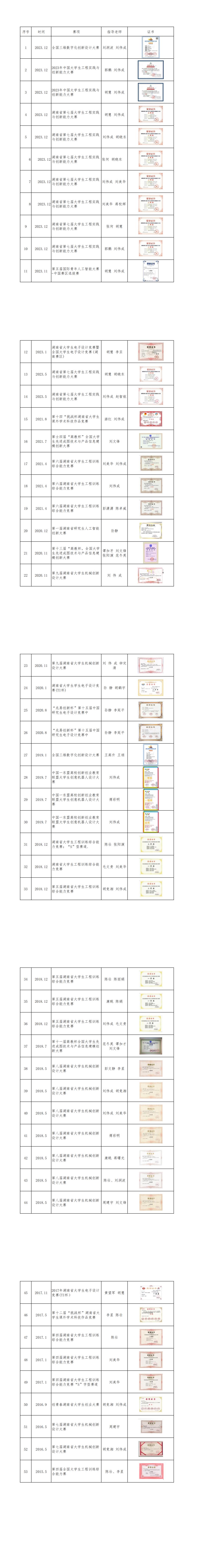 部分获奖证书